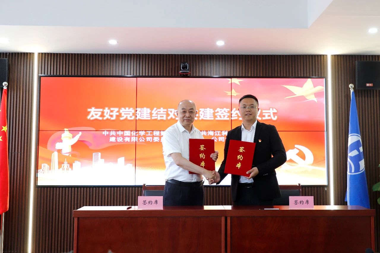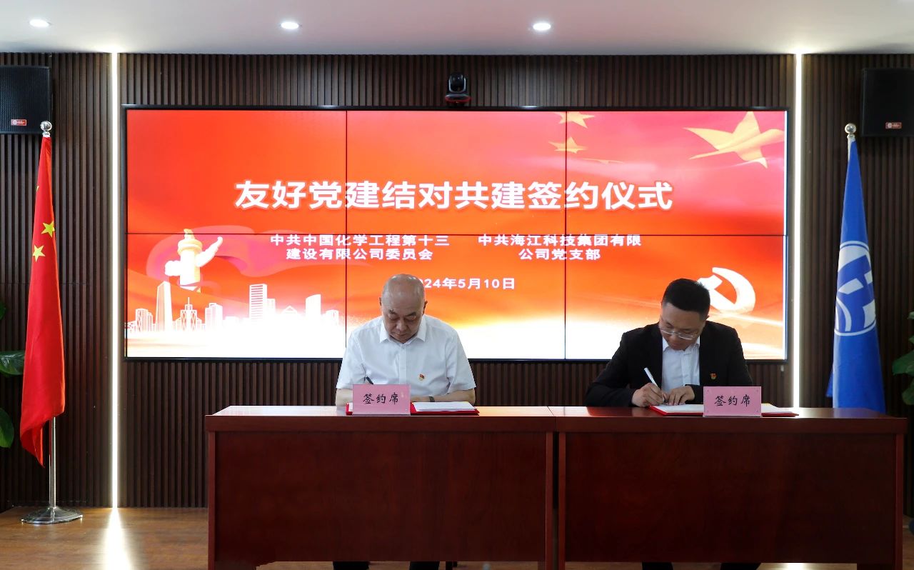 On May 10, 2024, the signing ceremony of the joint construction agreement between the Party branch of Haijiang Group and the Party Committee of China Chemical Engineering 13th Construction Co., Ltd. was held.