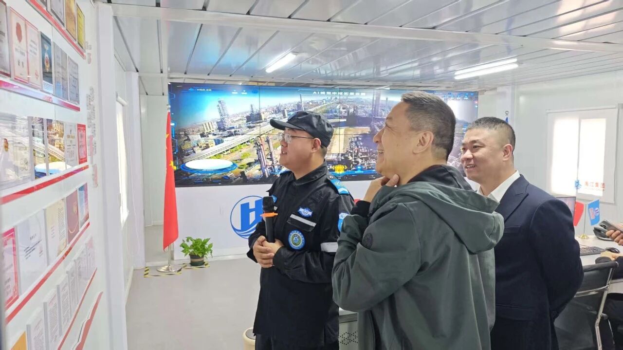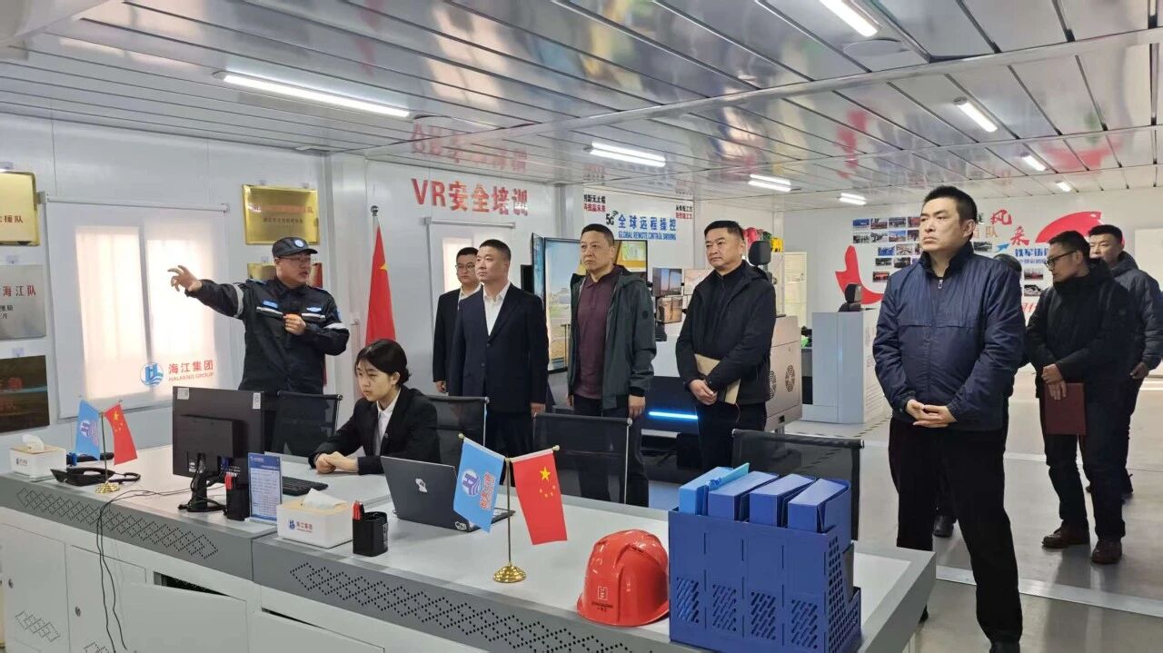 王德强副局长一行实地考察海江集团上海应急救援基地,详细了解了基地装备库建设情况及5G智能指挥中心的运行成效,并就进一步提升应急救援能力建设进行深入交流。